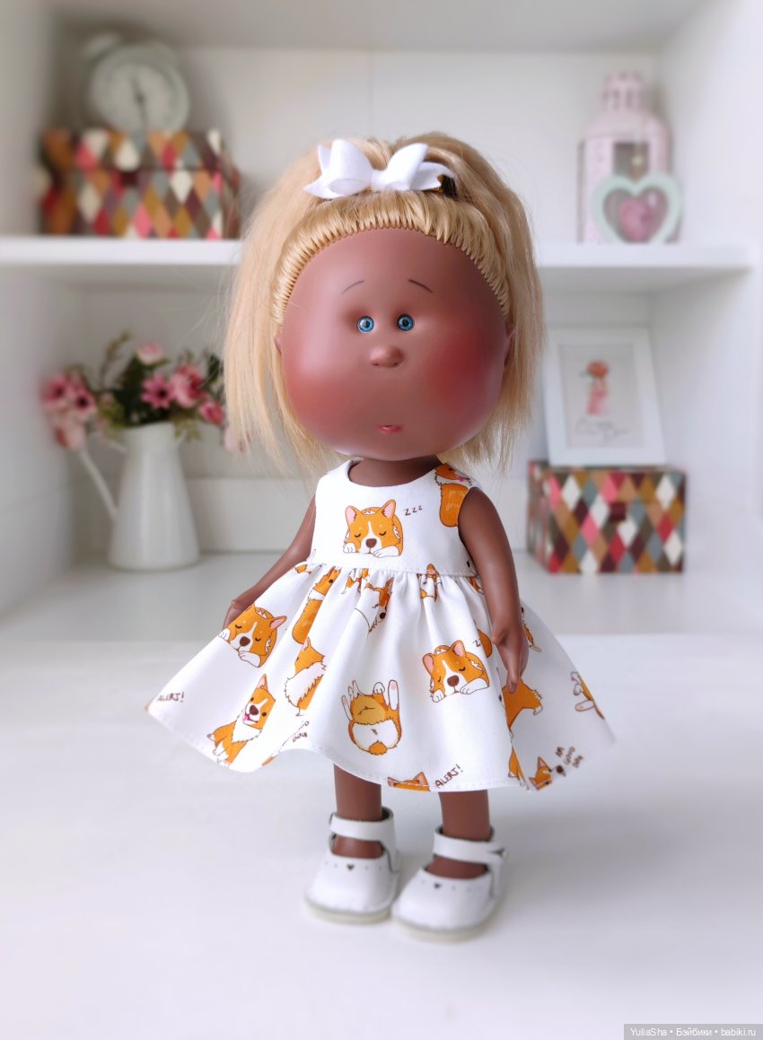 Предлагаю Вашему вниманию милые платьишки для кукол Мия 30 см. Сшиты из качественного хлопка, полностью распашные, лиф на белом подкладе. Застёжка — тонкая липучка.
