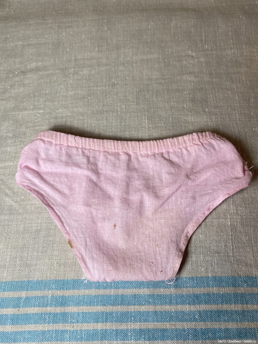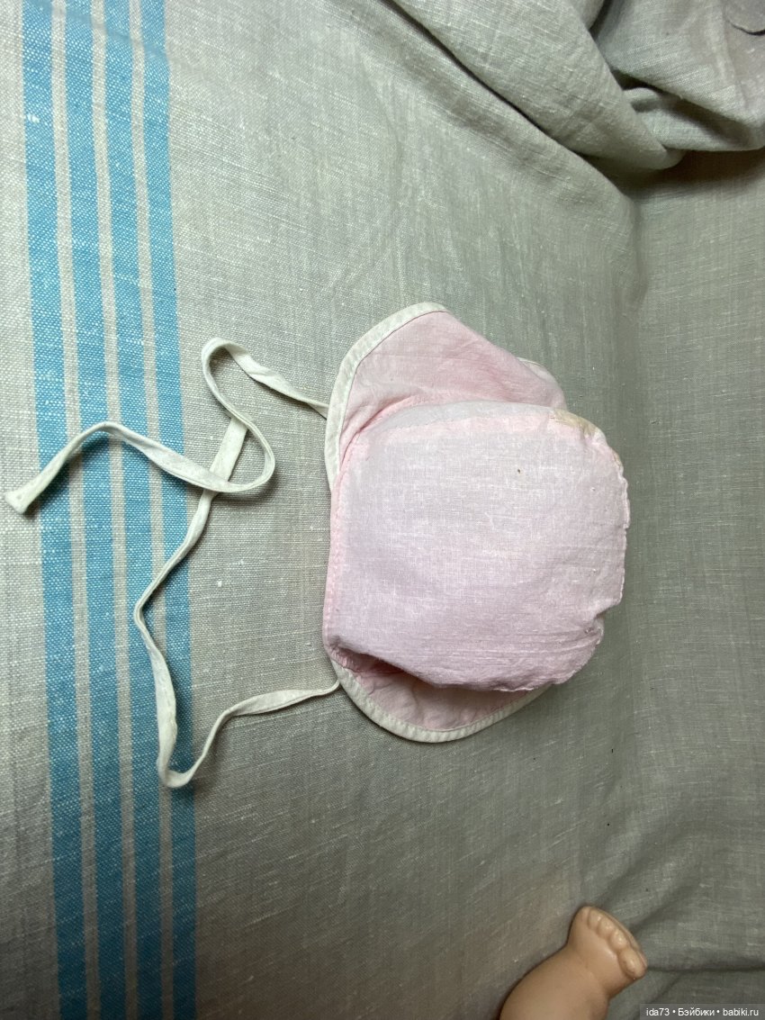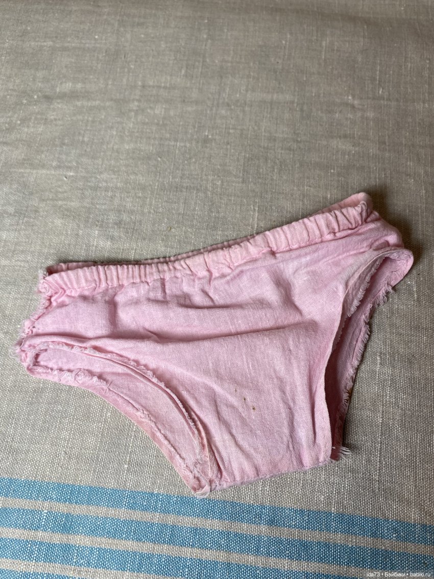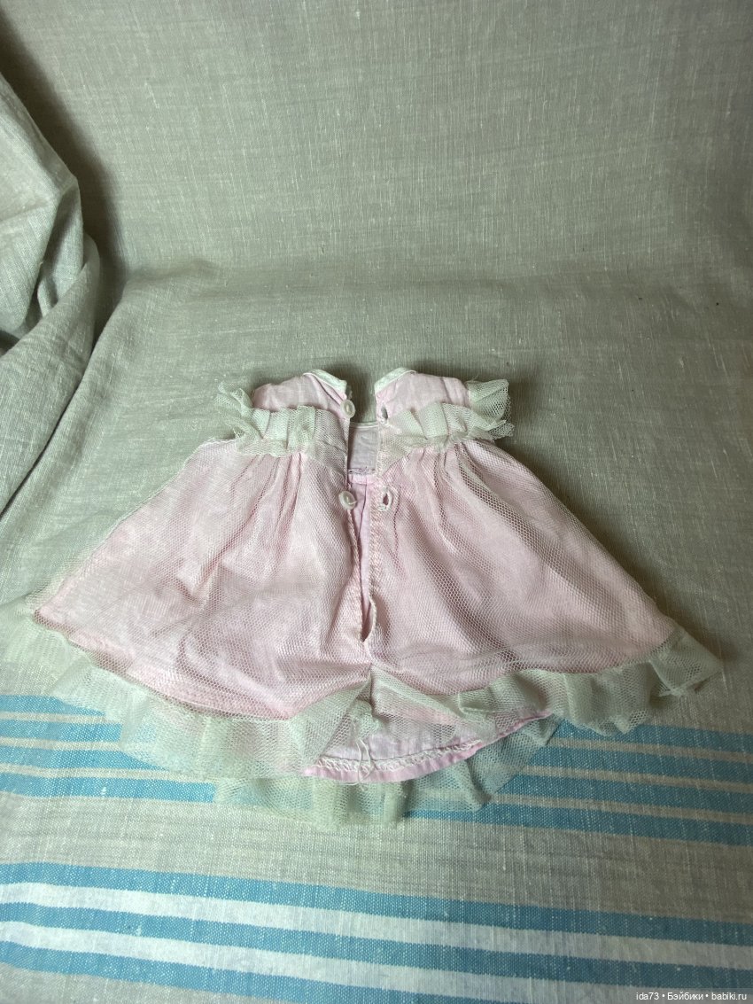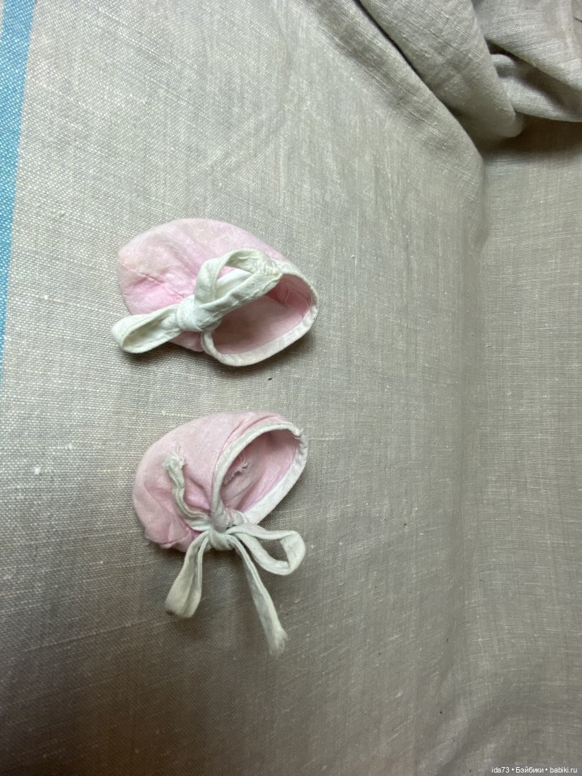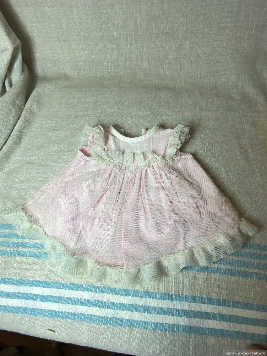 Платье, трусики, пинетки, чепчик -родные; в хорошем состоянии, не рваные. Но потому и не стирала, не вставляла резинок в трусишки и т д.