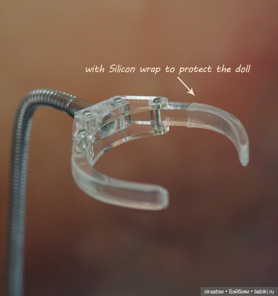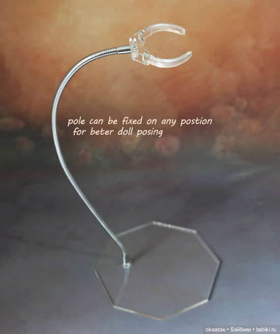 Штатив представляет собой гибкий металлический стержень, который можно крутить и сгибать в разные стороны для постановки куклы в разные позы, даже в положение «полёт».