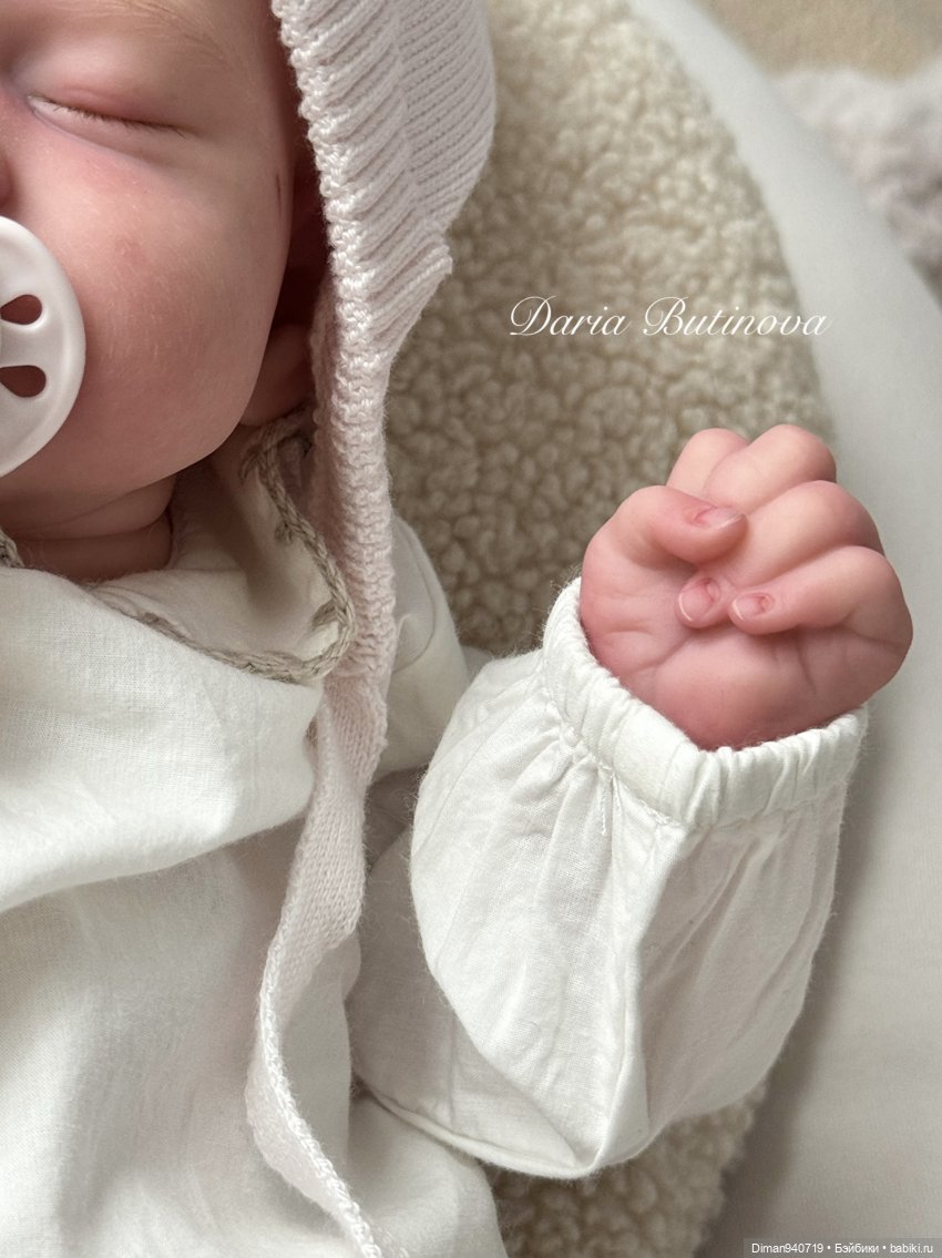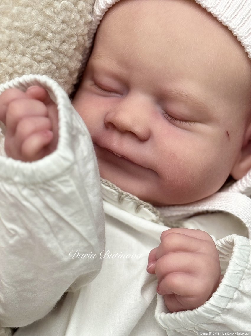 Милая, чудесная, хрупкая спящая девочка, которая ассоциируется у меня с первой улыбкой малыша. Вызывает только светлые эмоции и чувства, заставляя умиляться. Волосики прошиты 2 оттенками альпаки, волосики мягкие, как живые. Закрепитель-Тик, мягкое бархатное покрытие. У малышки есть всевозможные детальки, что делает её еще более живой и хочется рассматривать и рассматривать. Тело-лебяжий пух. Документы, свидетельство о рождении в наличии. Приедет с двумя комплектами одежды, пустышкой, пледом.