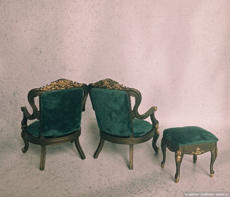 Гарнитур "Bradford" - 2 кресла + банкетка. Куклам до 16 см