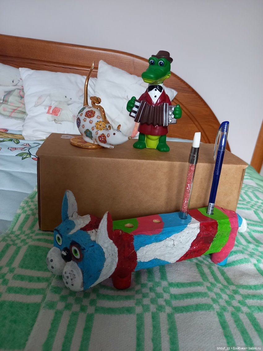 Карандашница Кот из дерева и наверно папье маше, длина 28 см, ручная работа, цена 600 руб