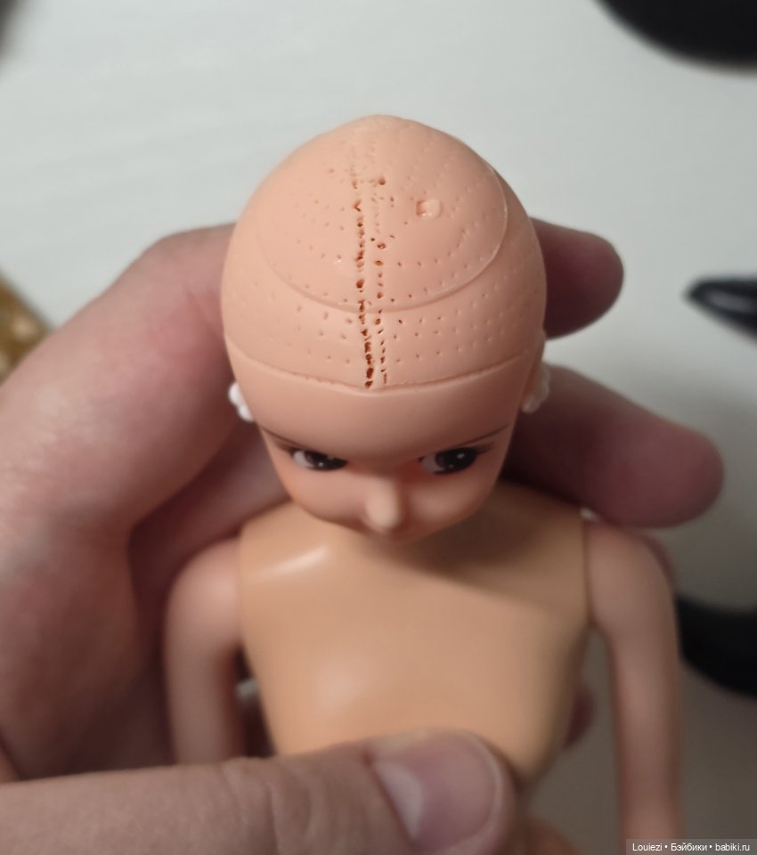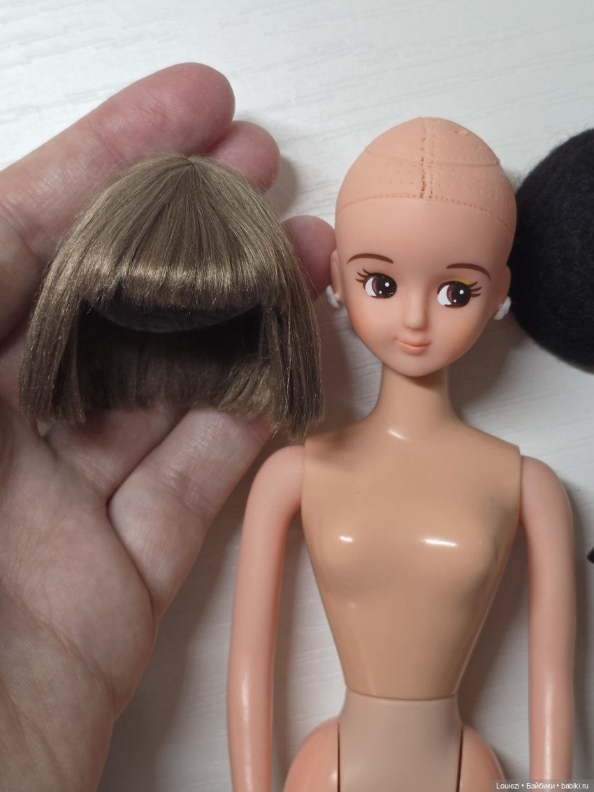 Кукла в акриловом паричке русого цвета. Акриловые волосы хорошо укладываются, послушные. Шапочка твердая, сидит плотно.