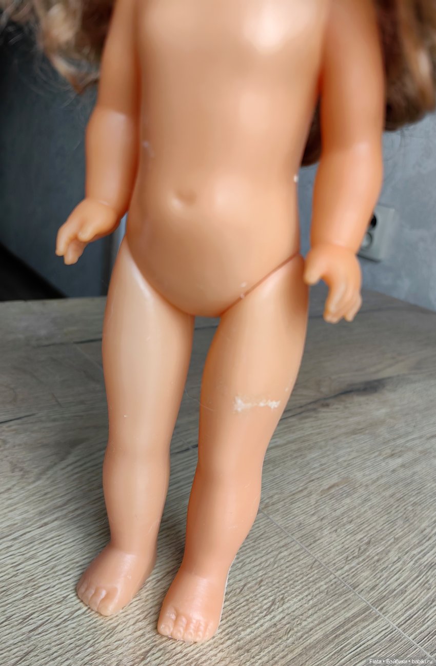 Добрый день! Случайно попала мне в руки такая кукла. Советские времена, производство ГДР. Рост около 32 см. Голова и руки резиновые, тело и ноги пластик. Красивая, с ладненькой фигуркой и шикарной шевелюрой, которую нужно привести в порядок. С ней была одежда: кофточка и трусики родные, насчет платья не уверена (см. фото в комментариях). Так же на фото в комментариях отразила нюанс на левой ножке (похоже на потертость).