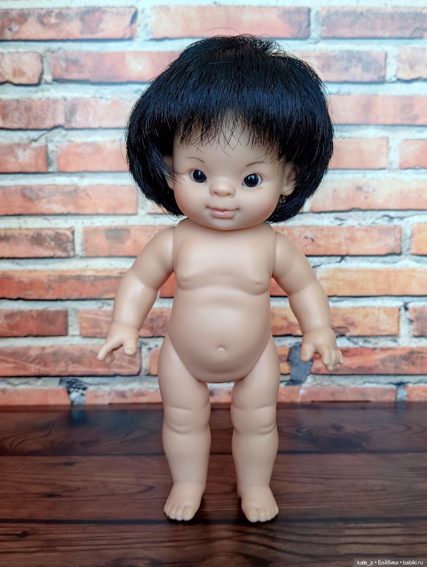 У Доры (азиатик) — зеленоватое пятнышко на животе. Есть черточка под глазом, точка на щеке и потертость на подбородке (потертость была сразу у нового).