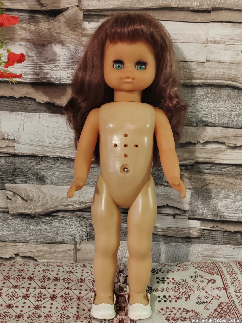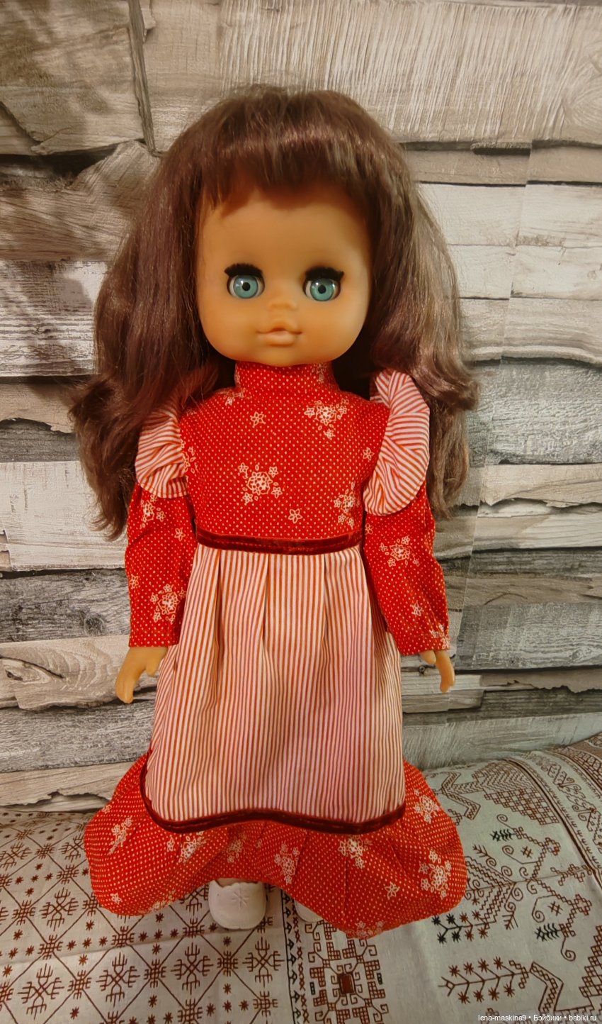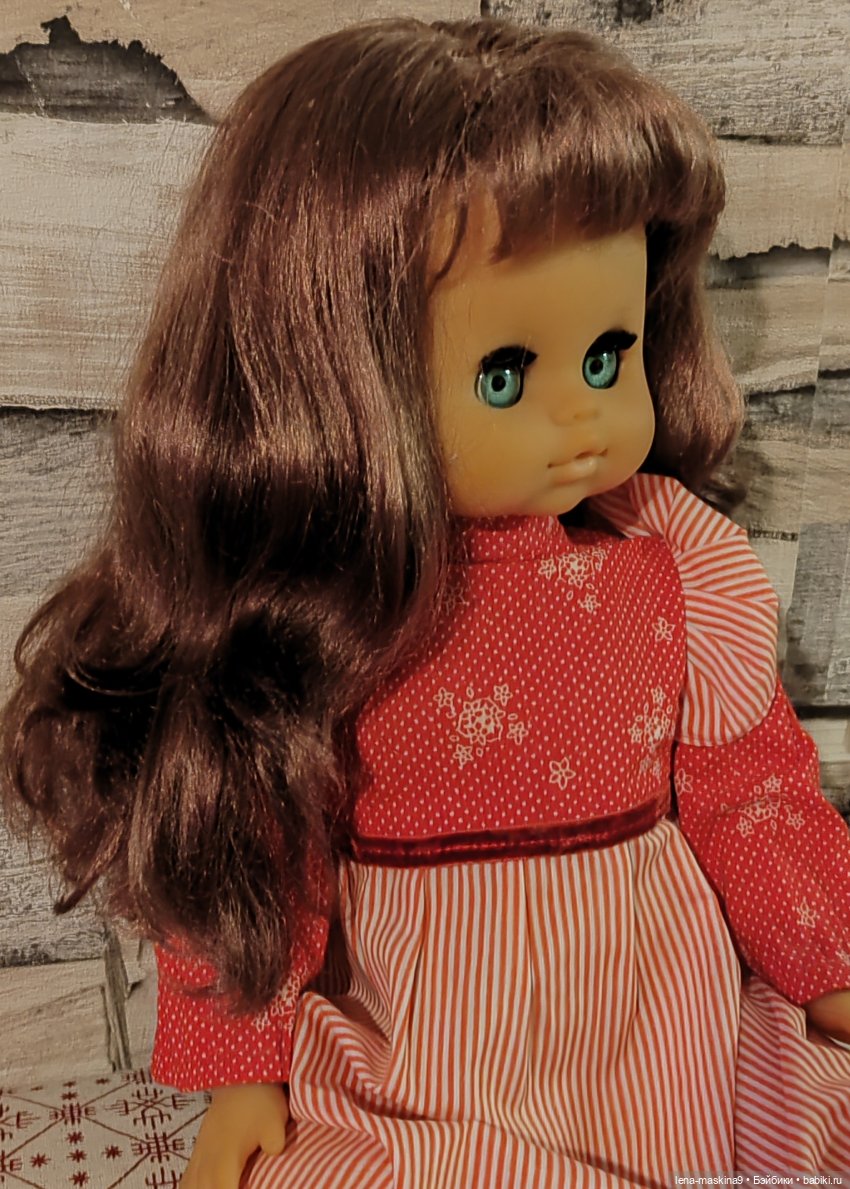 На платье есть пятна, на туфельках нет веревочек, там же немного порвались. Милая, хорошая кукла. Если есть вопросы, пишите пожалуйста в личку. С. Ув. Елена.