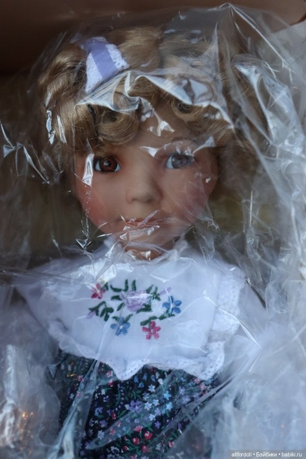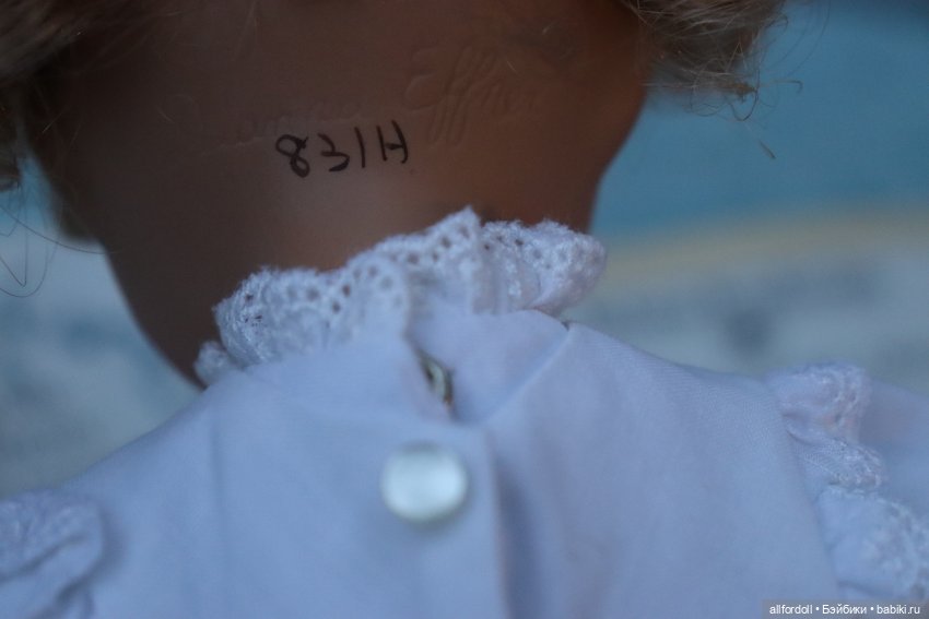 Голова (поворотная) с пластиной, руки 1/3 и ноги 1/3 — фарфор. Тело плотно — набивное. У нее красивые светлые классические кудри. Лицо очень аккуратная ручная роспись. Рост 36 см. Оригинал. На затылке стоит подпись автора и номер 831Н. Для меня похоже, что она новая. Идет, как на фото и в полной комплектации, включая коробку. Это просто подарок! Чтоб вот, прямо, всё было!