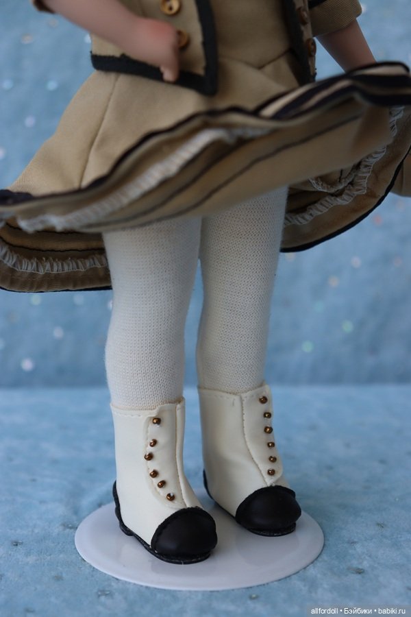 Рост 26 см. Ноги полностью, руки, пластина ниже груди и голова поворотная — фарфор, лицо ручная роспись; handmade аутфит, сшиты по уменьшенным лекалам точно как и в фильме. Идет как на фото. Хорошенькая!