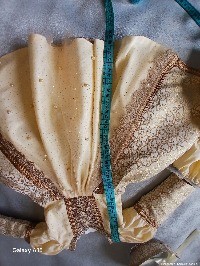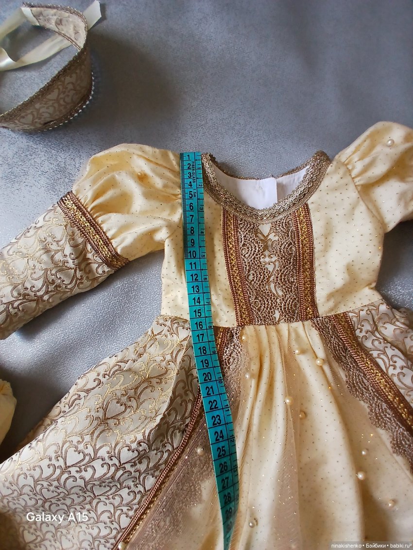 Комплект состоит из платья, корсета, кокошника, штанишек, все швы оверложены.