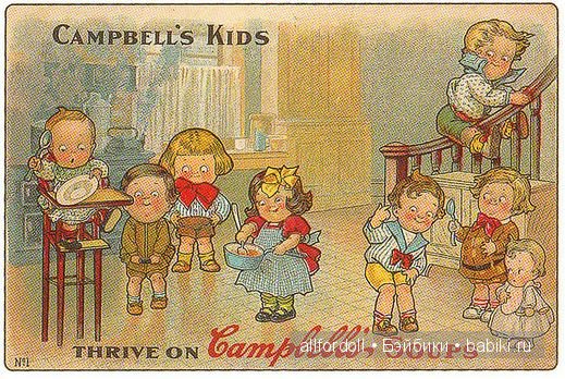 Американская художница Грейс Джебби (Grace Gebbie Wiederseim, родившаяся в 1876 году в Филадельфии, штат Пенсильвания), создала бумажных кукол Долли Динглс, и очаровательных детей для рекламы американской фирмы Кэмпбелл. В 1904 году она с мужем была приглашена для участия в деловой встрече с Компанией Джозеф Кэмпбелл (Campbell) и взяла несколько эскизов, которые хотела предложить для рекламы Супа Кэмпбелл. Компания Джозефа Кэмпбелла полюбила румяных детей, которых Грейс Джебби Wiederseim предложила, и быстро приняла их в качестве очаровательных талисманов для Супа Кэмпбелл. Суп Campbell существует до сих пор и продается в любом американском магазине продуктов. Хороший топик об этом написала Olga777, он называется «Грейс Джебби (Grace Gebbie Wiederseim). Бумажные куклы Долли Дингл (Dolly Dingle dolls)».