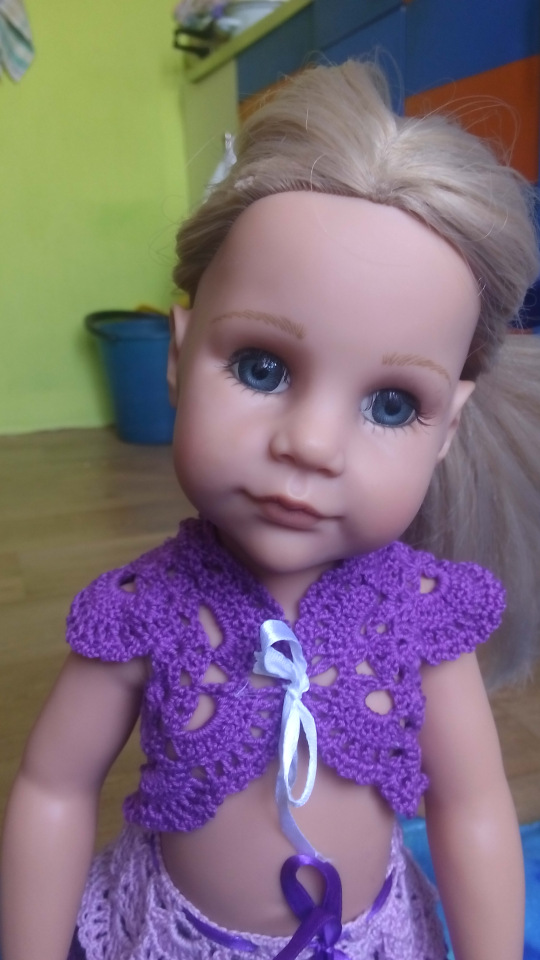 Ханночка или Сара, кто она я не знаю… Приехала в аутфите балерины, но у балерин челка, у этой куколки ее по-моему не было, т.к 1ый ряд челки отсутствует… Кто-то хотел сделать челку. При укладке волос выстриженные волосы не видно. Пятнышки на теле, их почти не видно, если только рассматривать или приглядываться, фотоаппарат не берет… Куколка не новая, пишу сразу, чтоб потом не было претензий, с дефектами, для меня не значительными, т.к волосы можно уложить, пятна вывести ремувзитом (на ура) или базироном, сравнить не с чем, может я даже придираюсь. Очень красивая девочка, может кто подскажет кто она, может редкая куколка.