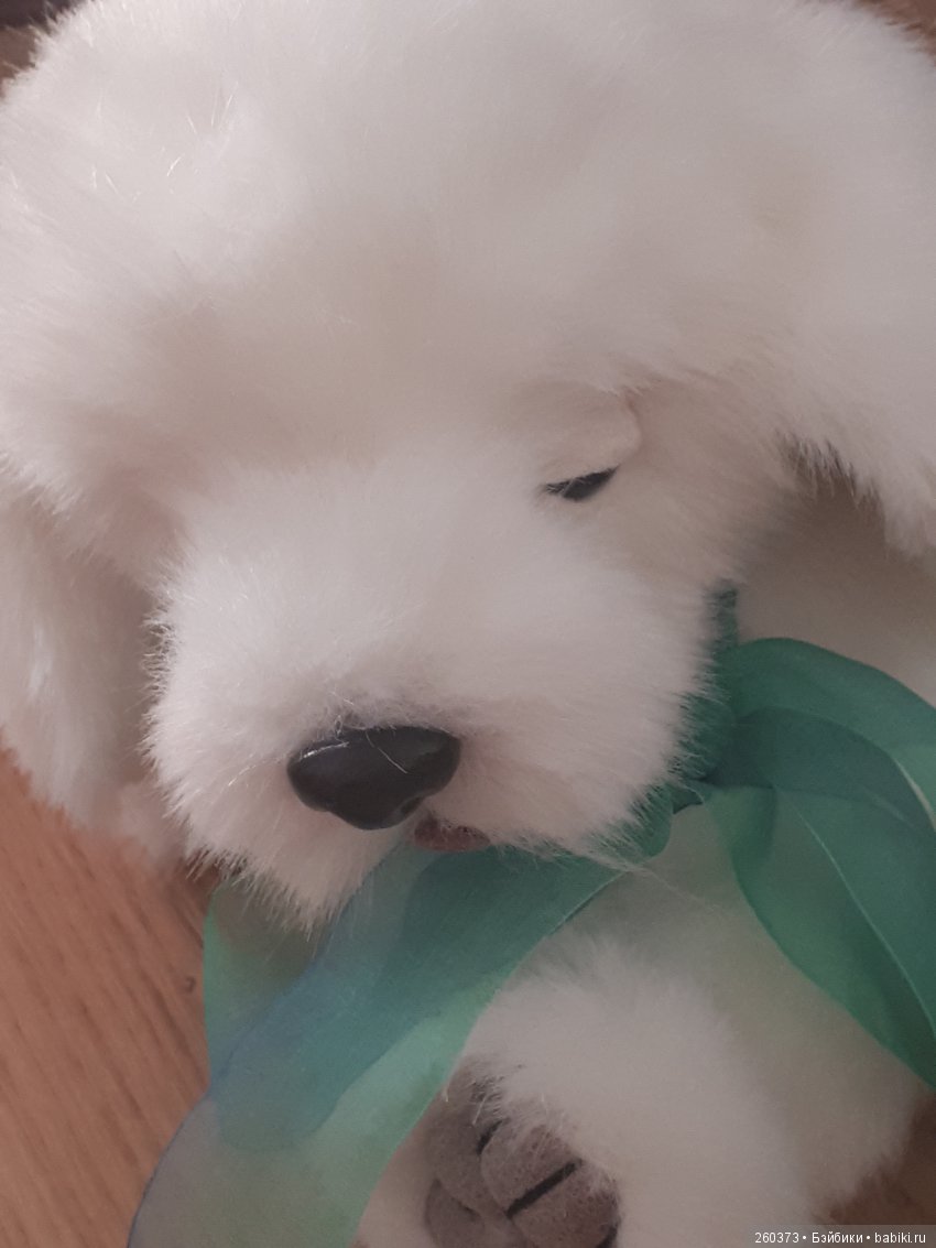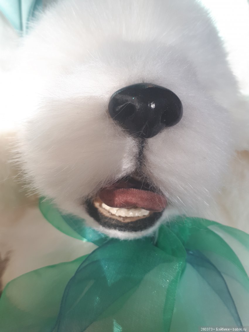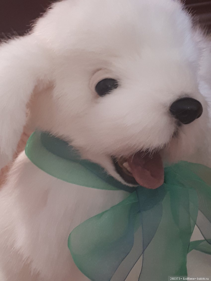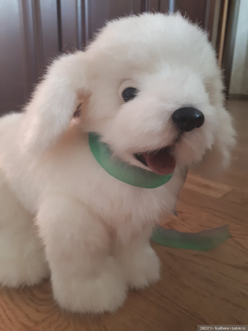 Малыш сшит на заказ. Продаю по необходимости, дешевле чем покупала. Щенок сшит из нескольких видов меха с использованием армировпния в хвостике и ушках. Ротик у собачки открывается и закрывается, так же как и глазки, есть зубки и язычек.Песик очень повижный.