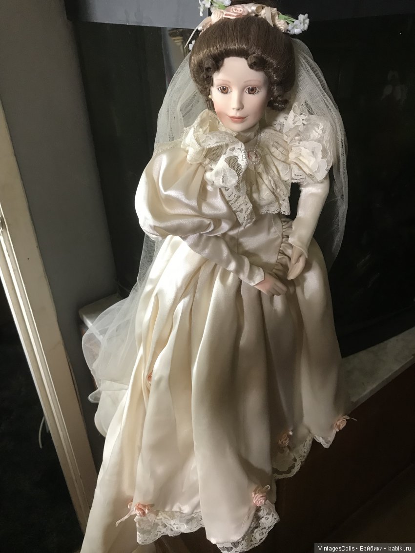 одна из куколок моей новой и пыльной коллекции, эксклюзивный выпуск Elizabeth, 1900-х свадебное ее платье от дизайнера, художника и создателя мастера Phil Tummino для Ashton-Drake, который начался в 1990 и закончился в 1995году.Фарфоровая куколка с мягким телом, на спине номер и подписана художником, В оригинальной коробке, с сертификатом и документами. Хорошее состояние для ее лет, немного платье наверное надо почистить.