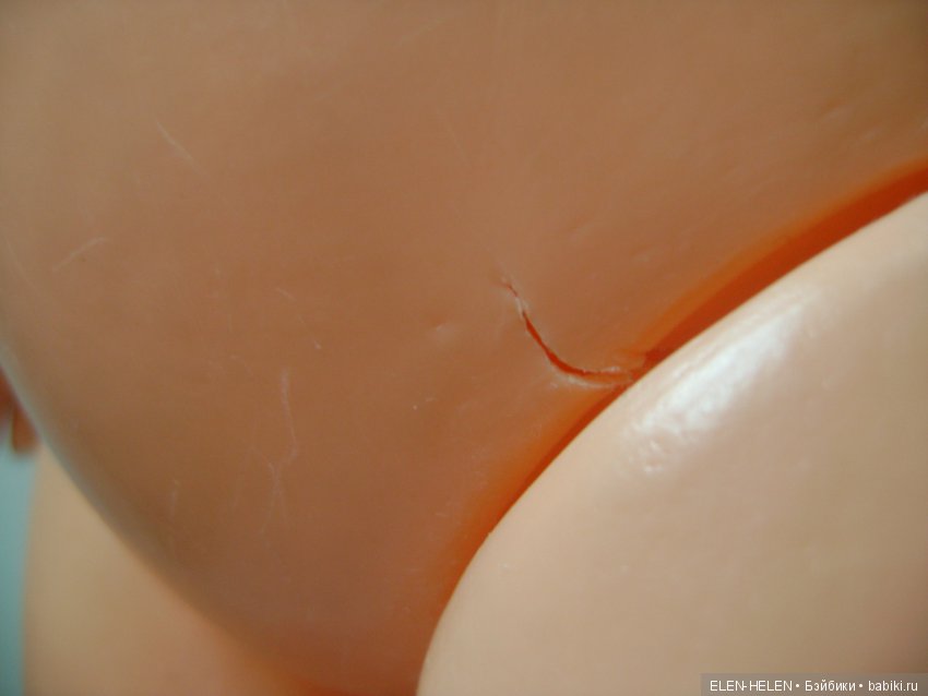 Недостаткичуть вмята пяточка и два разрывчика на теле у бёдер