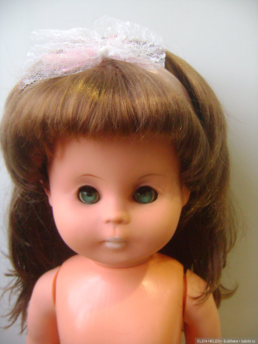 Эта куколка такое впечатление, что стояла в полке. Может дали раз ребёнку потрогать, ну отсюда может быть и надломы в бёдрах. И наверно сразу отобрали, и поставили подальше. Такое впечатление, что куколка совсем новая. Платье даже не стирано и трусики, всё чистенькое. Девочка ну очень красивая. Цвет волос очень шикарный. Прошу такую цену, только из-за того, что есть эти недочеты. Туфелька думаю, что треснула от времени. Если бы было все отлично, была бы совсем другая цена. Один родной, шикарный аутфит чего стоит. Если что-то не понятно, пишите, спрашивайте, буду рада ответить. Доп. фото делаю по запросу. Куколка очень редкая. Еще был похожий вариант ходячей куколки ГДР, тоже схожи моды. Могу отправить в своей таре, что экономит на пересыле. Только цена за куклу и сам пересыл.