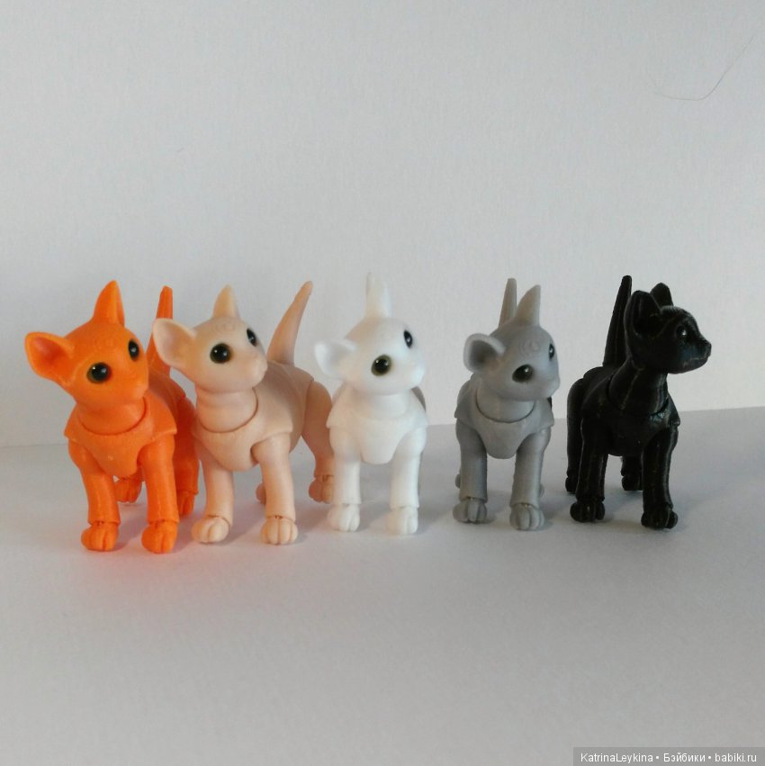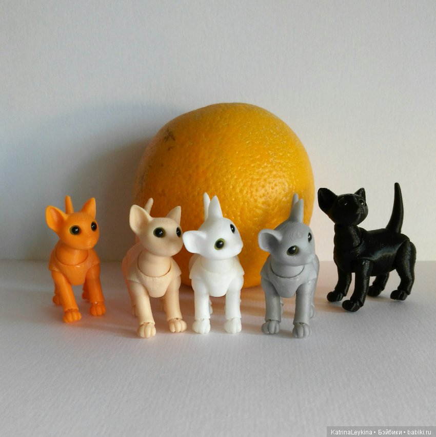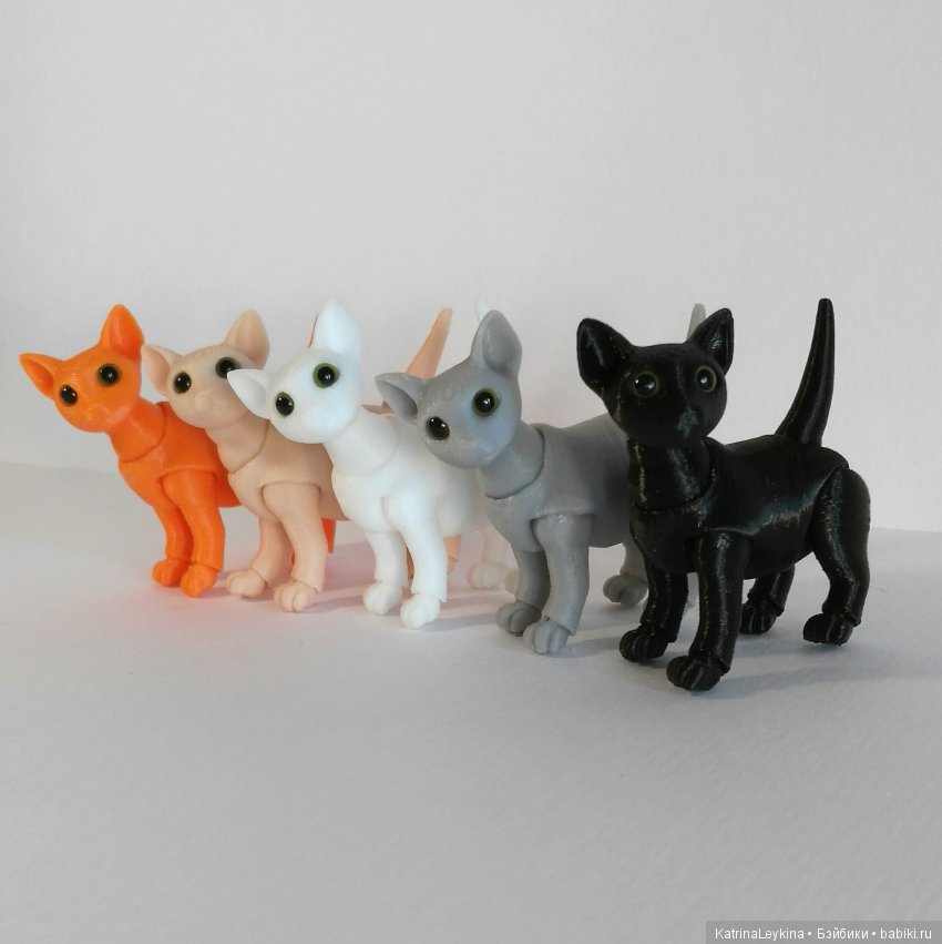 Возможна печать и в других цветах (например, черный, белый, серый, для тех, кто готовится к Хеллоуину — тыквенно оранжевый) и/или другого размера (рост до ушей 5, 6, 7 см).