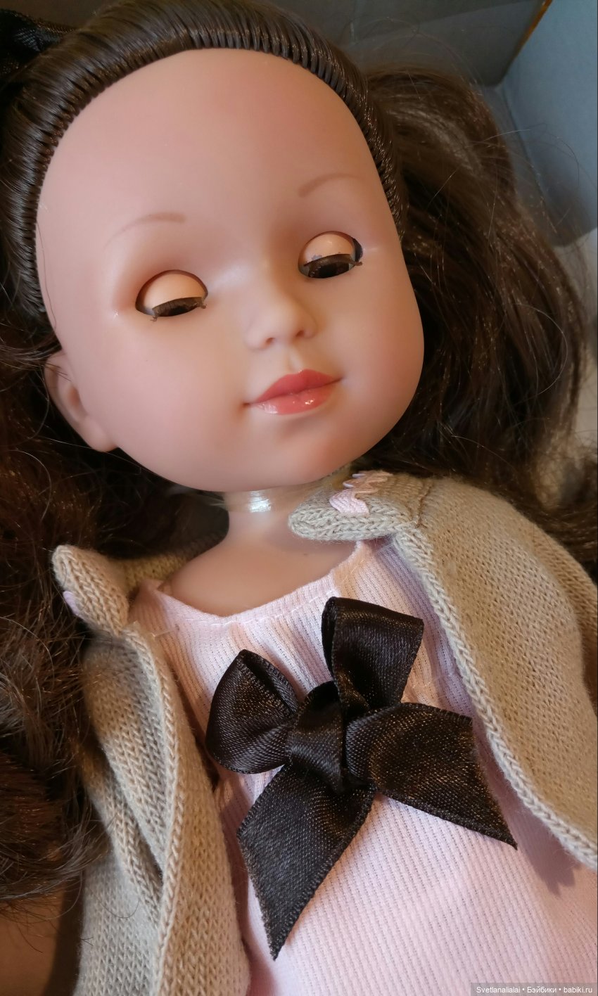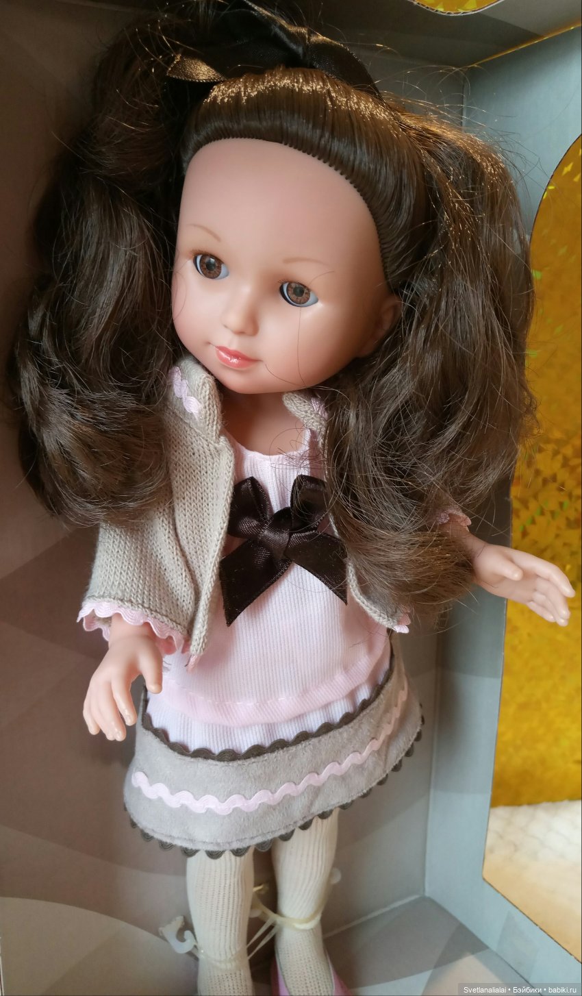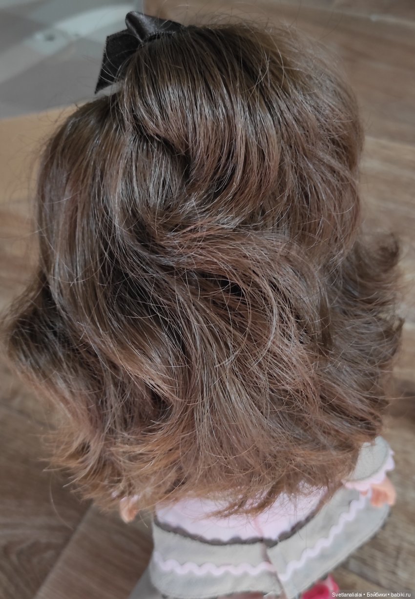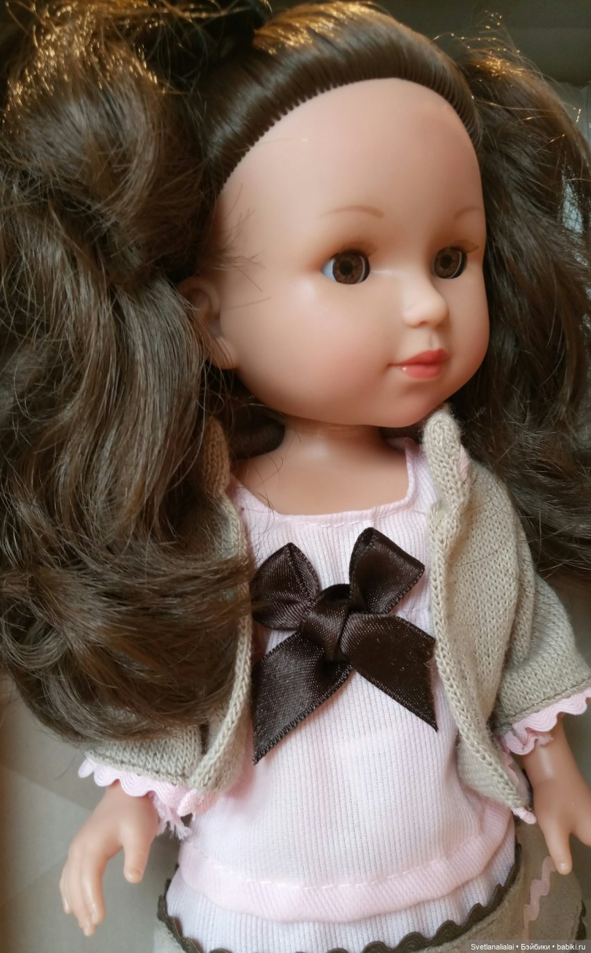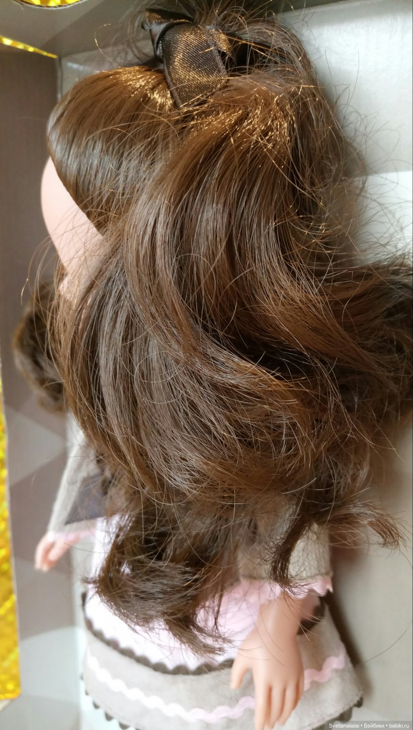 Волосы каштановые, мягкие, шелковистые, ложатся крупными кольцами. Прошивка хорошая, создает объём волос. Пропорциями схожа с куколками с Вестида де Азул и Ариас.