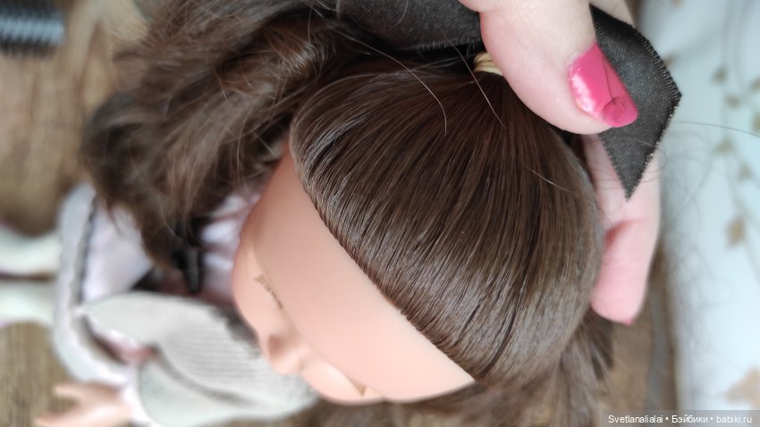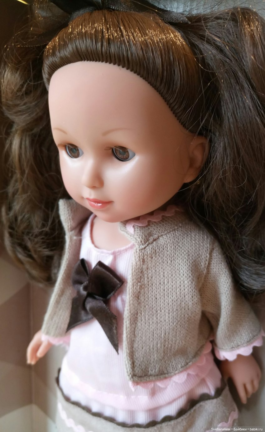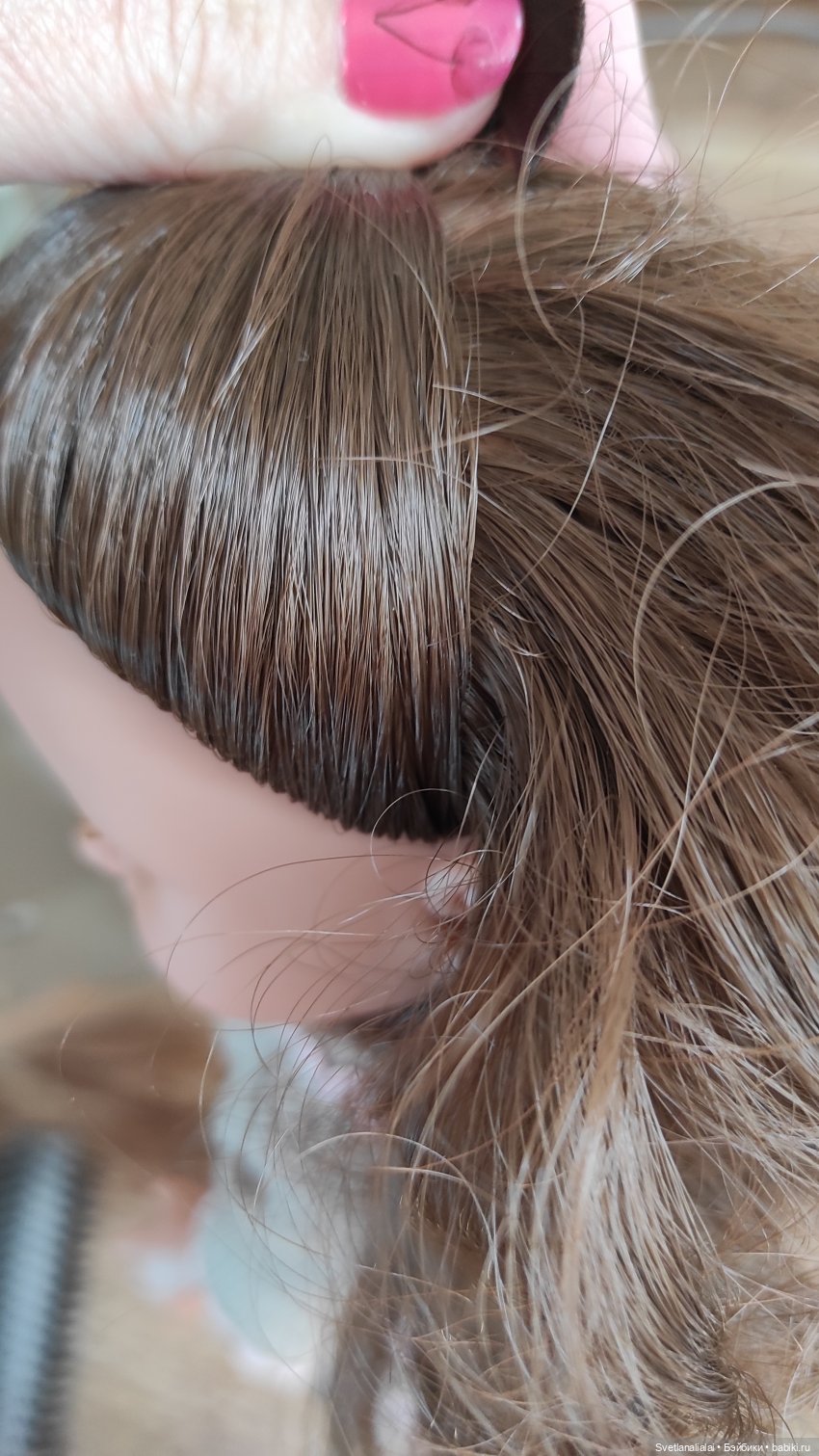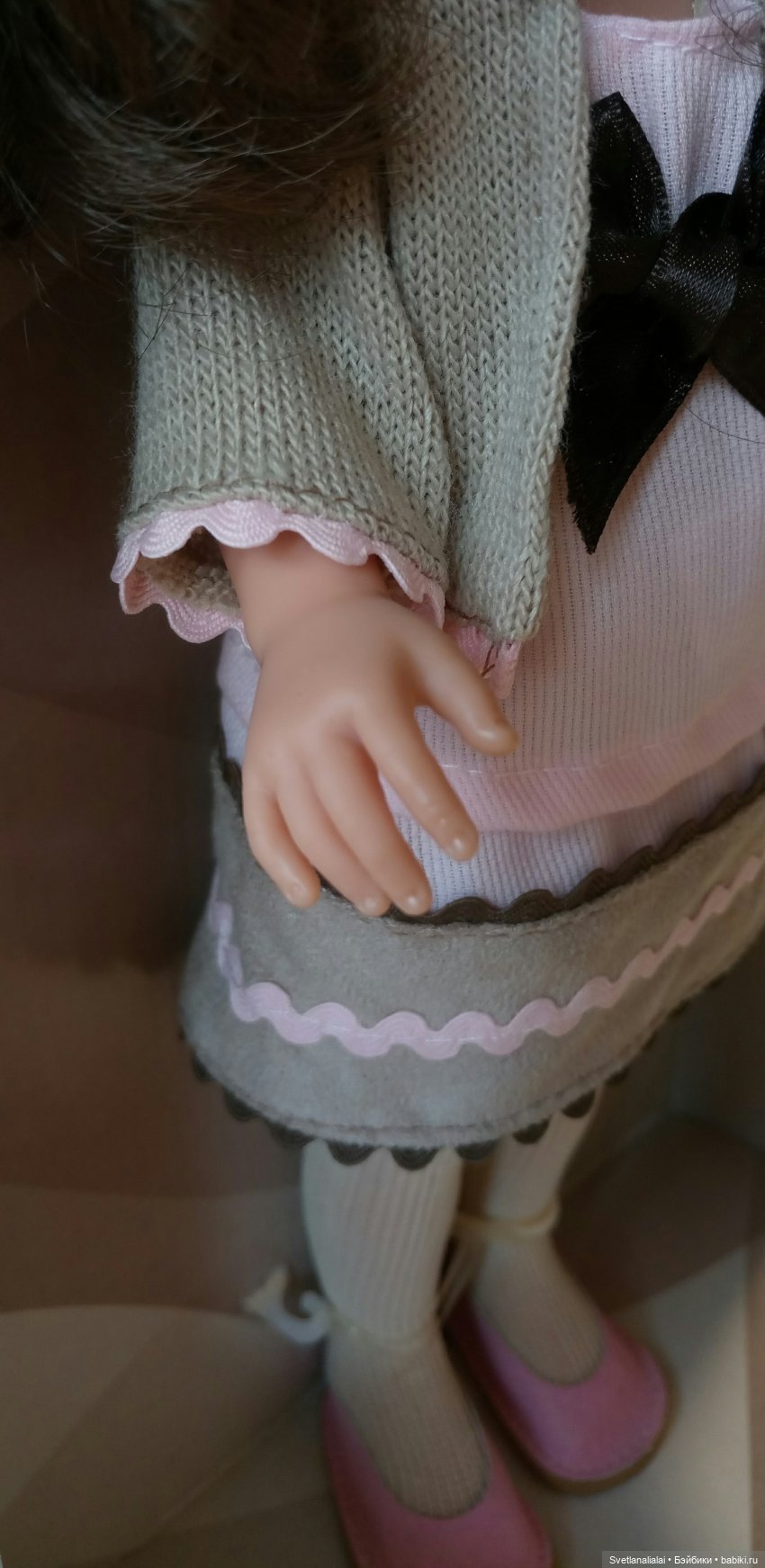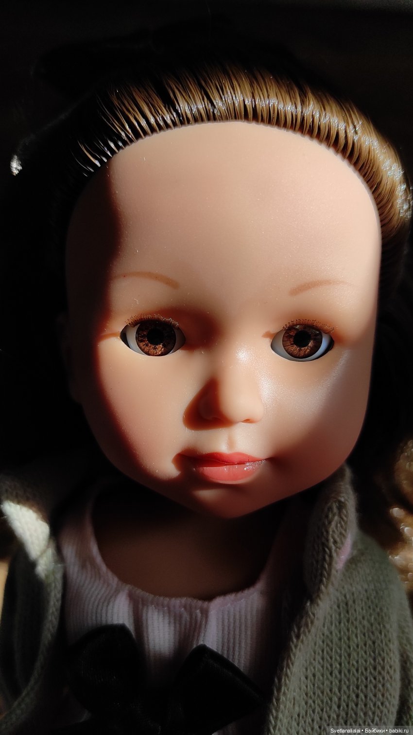 Волосы каштановые, мягкие, шелковистые, ложатся крупными кольцами. Прошивка хорошая, создает объём волос. Пропорциями схожа с куколками с Вестида де Азул и Ариас.