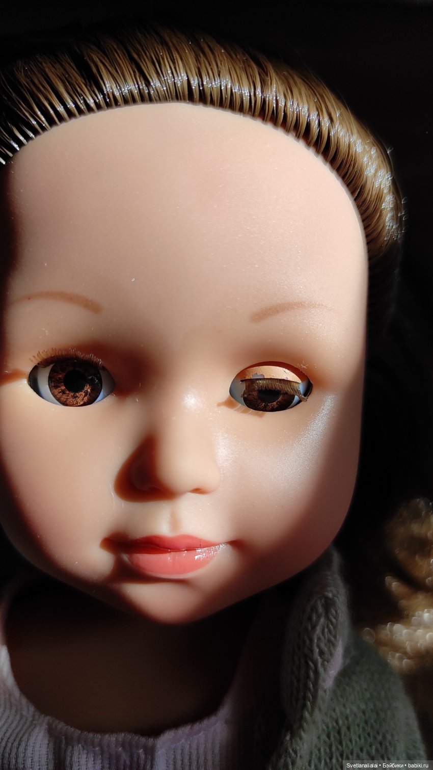 У куколки я обнаружила скол краски на веке и полоска на глазу. Кукла такой приехала из магазина, я забирала её последнюю, понравился цвет волос.