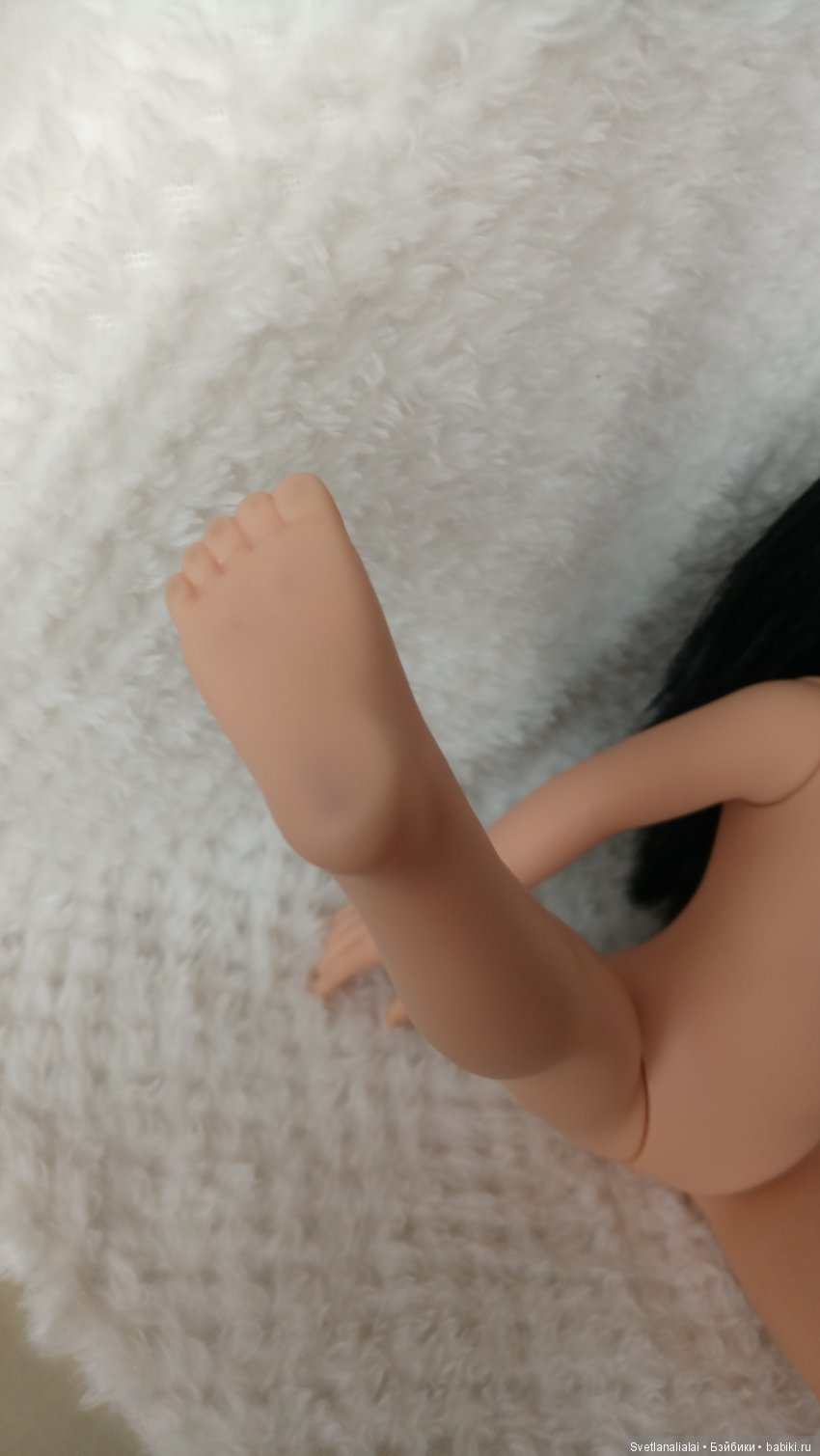 На теле могут встречаться полосочки скорее всего заводского происхождения в остальном тело ровное и чистое, только на подошвах ног небольшой окрас от обуви.
