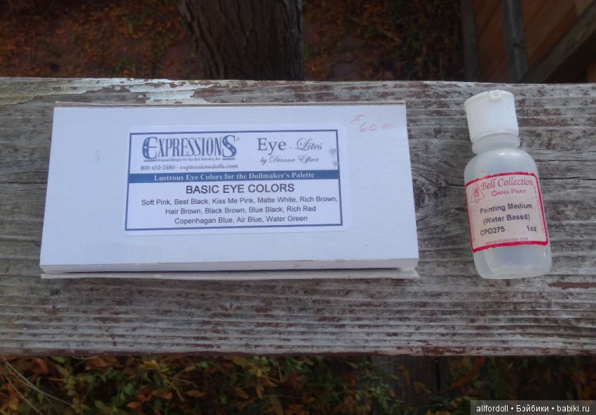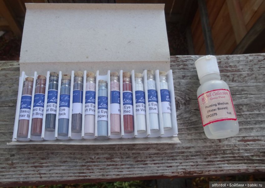 Многие знают, что в оригинале фарфоровые куклы расписываются специализированными красками, которые закрепляются с конусом № 017 или 018 при помощи обжига или по другому это называется «China Fire» (china paints). Краски идут в сухом виде и разбавляются специальной водой. Я использую Eye Colors от специально Дианны Эффнер.