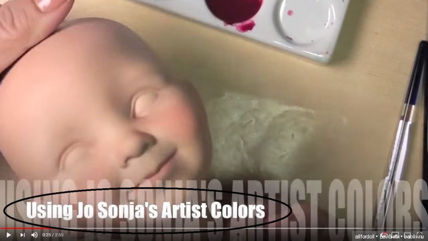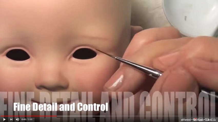 Еще один нюанс: на том видео, где Дианна Эффнер расписывает личико куклы, если вы обратили внимание, есть часть, где она расписывает куклу с вырезанными глазками. В этом случае нужно будет только наложить румянец, расписать бровки и губы...., потому что глазки будут вставные.