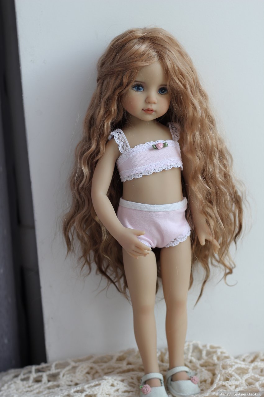 Цена указана за куколку НЮД. Для куколки был специально заказ парик из козочки из супердлинных кудрей. Он входит в стоимость! Можно приобрести куколку с платьем ручной работы с вышивкой, нижней юбка, украшением на голову, туфельками из натуральной замши. Тогда стоимость составит 55000 руб. Парик, в котором куколка приехала, тоже положу.
