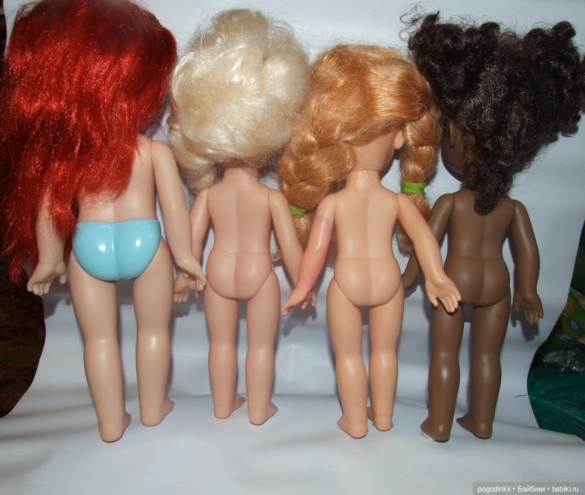 Ариэль (33 см): рыжеволосая красотка. Голубые трусики нарисованы на куколке изначально. Платье не родное. Немного подкрашены губы.