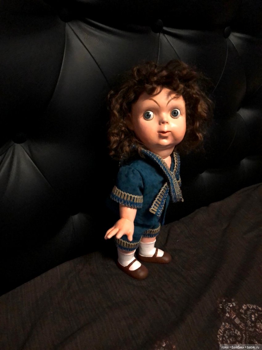 Очень милый гуглик 40 см сделан по фотографии в единственном экземпляре.Материал композит, глаза антикварные, парик мохер, костюм хлопок.