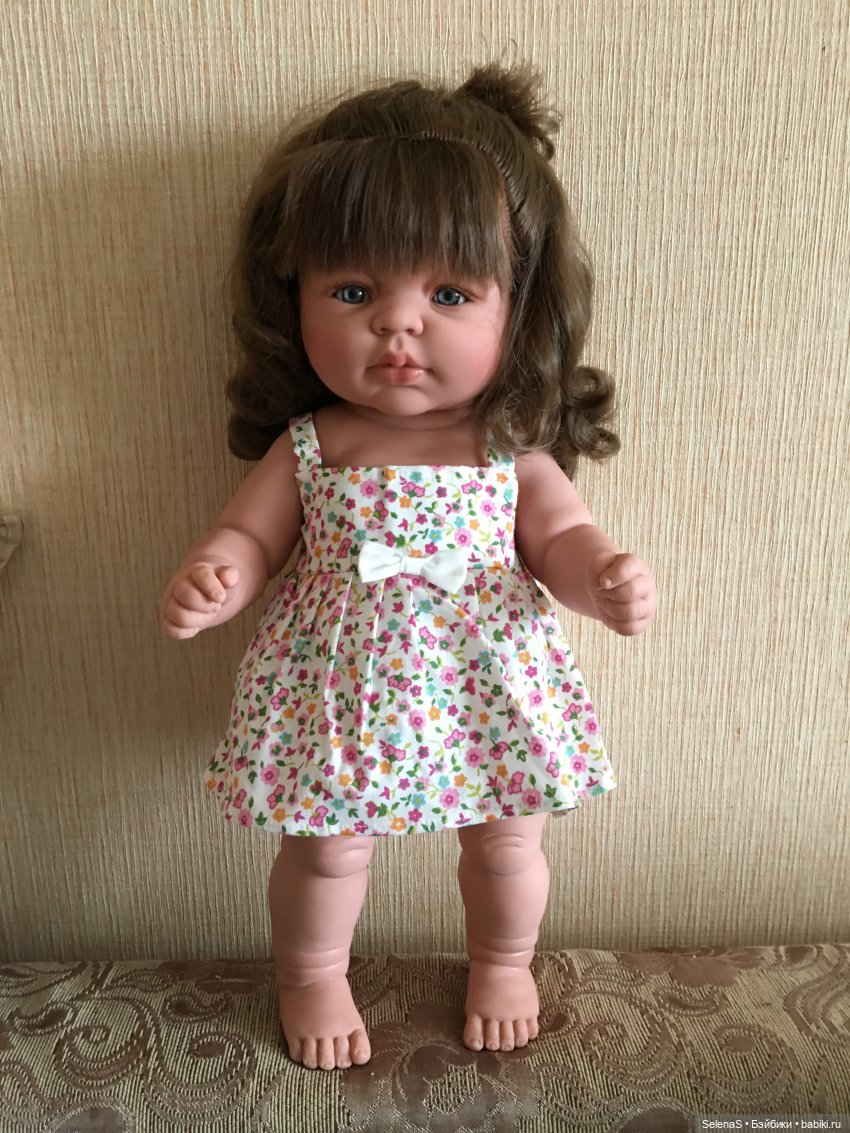Оригинальная Испанская новая кукла Диана.Девочка полностью виниловая на прямых ножках Может самостоятельно стоять и сидеть.Все части тела подвижны. С анатомически половыми признаками.Кукла имеет легкий аромат ванили.Блондинка с распущенными волосами не парик волосы прошиты по всей голове.Можно делать прически.Серые акриловые глазки обрамлены пушистыми ресничками, глазки не закрываются.На всём теле имеются складочки как у настоящего ребёнка.Одета белые трусики и белый сарафанчик с рисунком, одежда вся снимается.Кукла открепилась от Коробки для фото.При желании с куклой можете дополнительно купить вязаный костюмчик желтого цвета в состав его входят штанишки, платьице, шапочка, повязка на голову или комплект лисички, фото предоставлю.