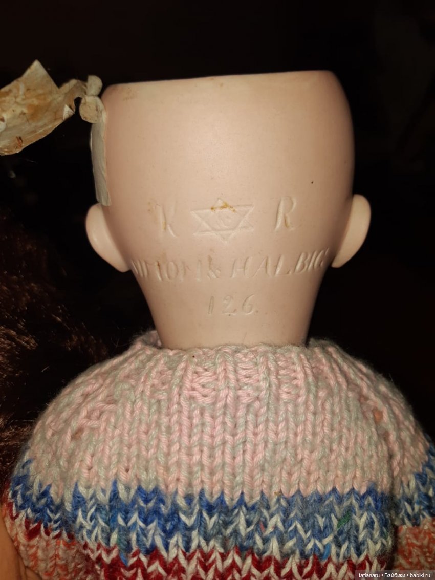 Антикварный малыш K&R Simon&Halbig 126. Глаза спящие на рокере, синхронные, воск на веках частично сохранён. Голова фарфор, остальное-композит, антикварный парик, картонный пейт Отличная натяжка. Сохранена красная роспись на пальчиках рук и ног. Одежда-винтаж: свитер и шкрстяные штаны с шапкой