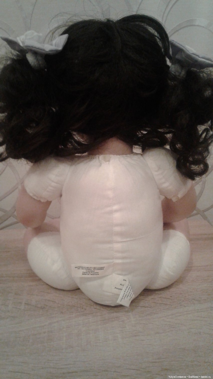 Куколка не новая, но в хорошем состоянии. Ей не играли, но сидела на полочке. При фотографировании заметила полоски на глазу. Пахнет нежно детской присыпкой.