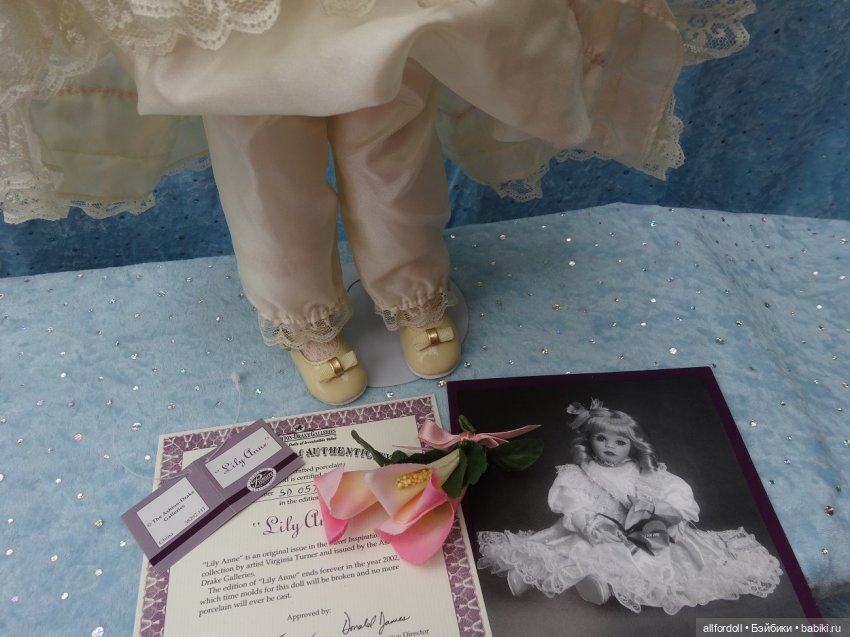 Фарфоровая коллекционная малышка Lily Anne (Лилия), её производство остановилось навсегда в 2002 году и больше не будет возобновлено.