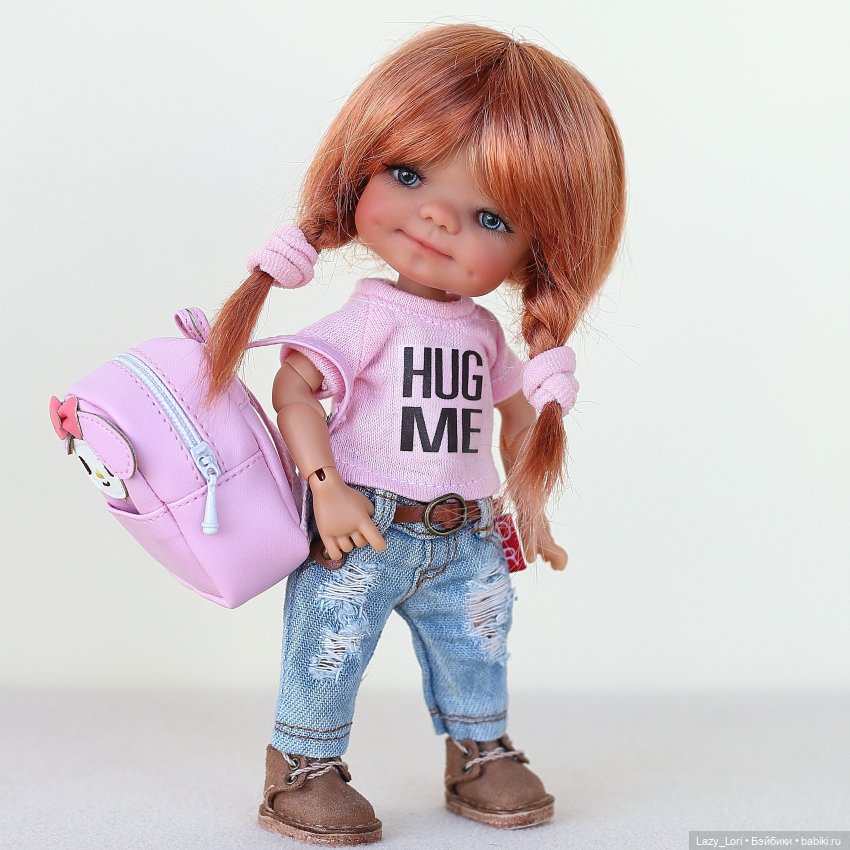 Рюкзачок 5 см в высоту. Длина лямок регулируется. Основное отделение на молнии + функциональный карман. На фото для примера с куклой 16 см. ростом.