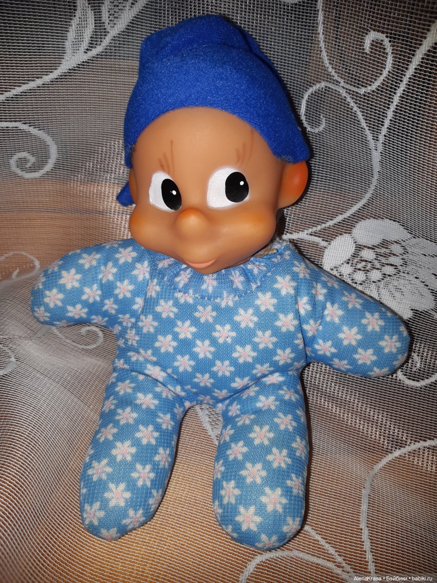 Рост сидя около 13 см, весь мягкий, голова резина
