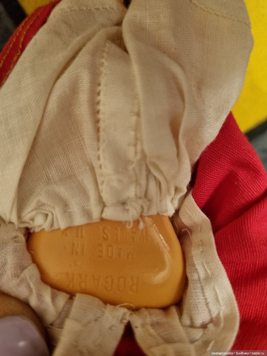 Кукла сделаны в начале 50-х в Уэльсе в местечке Пэнхолм на фабрике Глэдис Роджерс и Джона Кларка(из начала их фамилий — название марки Rogark). На спине клеймо: Rogark, made in Walis U.K. Его не всегда можно прсмотреть, так как одежда у большинства этих куол приклеена.Крашеный тортулон, спящие глазки без ресниц. Поворот рук, хорошо проработанные кисти.