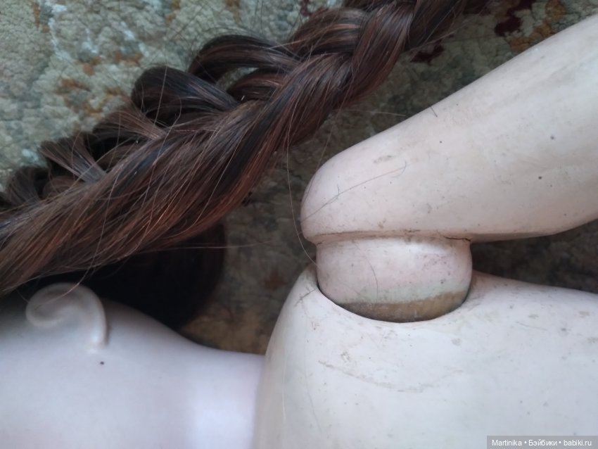 Голова без трещин, лайт тест фото приложу в комментах. На правом виске чип от снятия парика и следы клея по четырем точкам фиксации парика.