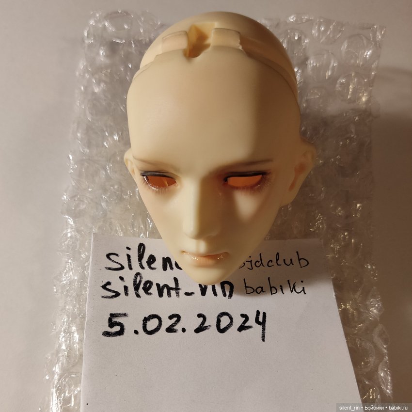 Покупалась кукла целиком ради тела — на бждклабе, у пользователя ArvenSS, оставлены взаимные отзывы (можно посмотреть здесь: bjdclub.ru/feedback.php?mode=feedback&username=silenceer). У меня голова всё время пролежала в пупырке в закрытом от света шкафу. Рост куклы 50 см, но голова небольшая, сравнима с головами обычных мсд. Дефектов и модификаций нет. Фирменный мейк без повреждений. Не знаю, какой именно скинтон и насколько сильное пожелтение, по запросу могу сфотографировать сравнения с другими моими куклами. Комплектация — голова, механизм для глаз, вставные зубы, документы. Обновлено: родные глаза сняты с продажи.