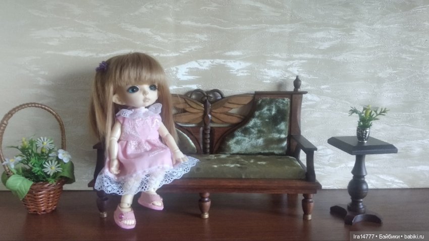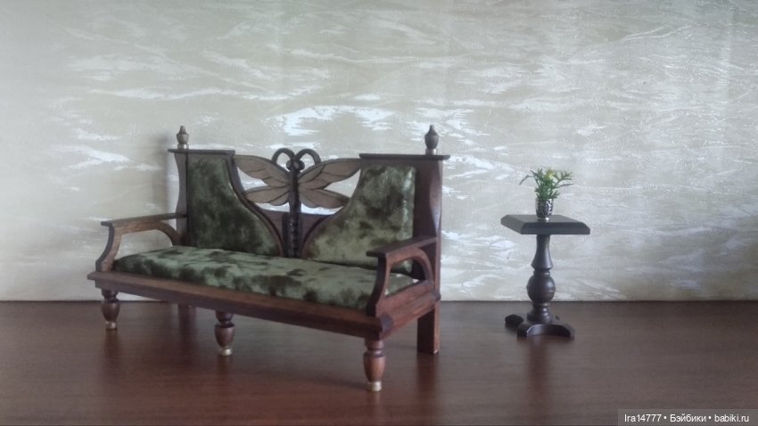 Диванчик под старину, выполнен из натурального дерева.Подходит для куколок ростом до 16 см