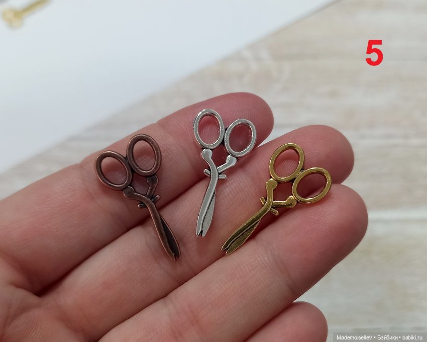 5. Ножницы, цвет серебро, золото и медь, длина 2,7 см — 17 руб.