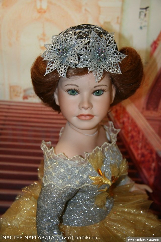 Куколка витринного хранения, Очень красивая и фотогеничная. Родной аутфит шикарный, многослойный, с бубенчиками. Аксессуар (волшебная палочка со звездой), документы, наручный тэг в наличии. Коробку надо поискать (но не обещаю и она была повреждена). Кукла безупречна. Сколов, трещин, царапин нет. Фарфор рук и ног на 3/4, грудная пластина, поворотная голова. Паричок. Тело твёрдо-набивное, очень ладненькое. Неимоверной красоты зелёные глаза, стекло.
