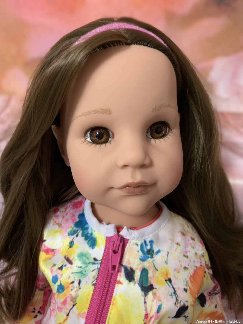 Продам Ханну в спортзале от Готц (Gotz) 2017 г…Куколка абсолютно новая была откреплена от коробки в личную коллекцию и так всё время провела в коробочке. Рост 48 см.Полностью виниловая.Тело обычное классическое, 5 точек артикуляции.Натяжка головы очень хорошая, руки хорошая, ножки чуть слабоваты, но стоит самостоятельно.Лучше около стеночки или на подставке.Волосы тёмные прошиты по всей голове, пробор прямой, можно мыть и делать разные причёски.Прошивка хорошая, волос много, хрустят.Глазки карие с ресничками не закрываются.У Ханночки яркая интересная спортивная одежда, а так же дополнительные аксессуары: батут, спортивный мат и туника.В комплекте документы, родная коробка(чуть повредилась при транспортировке на фото показала).Из нюансов еле заметная боестяшка под левой бровкой(видна под определённым углом и то если знаешь).Куклу не раздевала и не планирую.Она новая и поэтому продаю как есть.Пишу первый владелец так как я её открепила и прическу распустила.