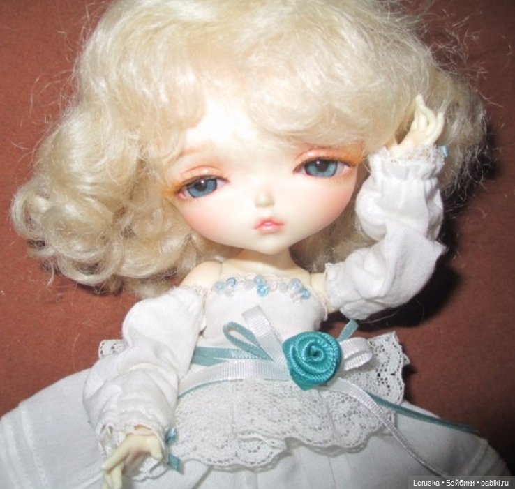 Глазки — нежно-голубые. Карие положу в подарок! Паричок 6-7, мохер. Позы держит. Стоит сама. Куколка проклеена замшей. Замша не заметна, это позволяет девочке лучше держать позы. Цвет, Normal.