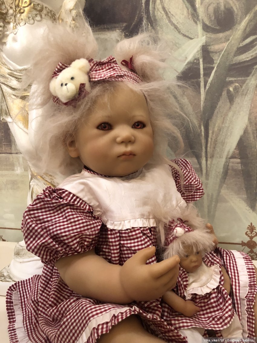 Полный комплект. Я первая хозяйка. Коробка. Можно на подарок! Это большая редкость для кукол Химштедт. Тяжёленькая детка, как настоящая. Очень тискательная, обнимательная, волосики мохер, шелковое платье, со своей куколкой, документы есть, рассрочка есть, фото добавлю. Состояние близко к новому, две коробки. Рассрочка есть