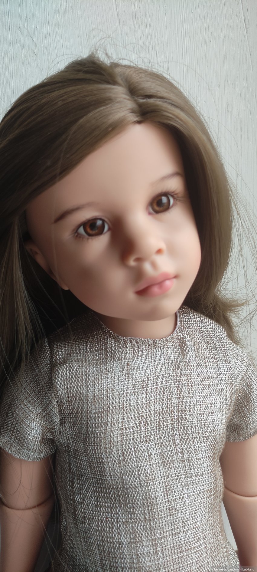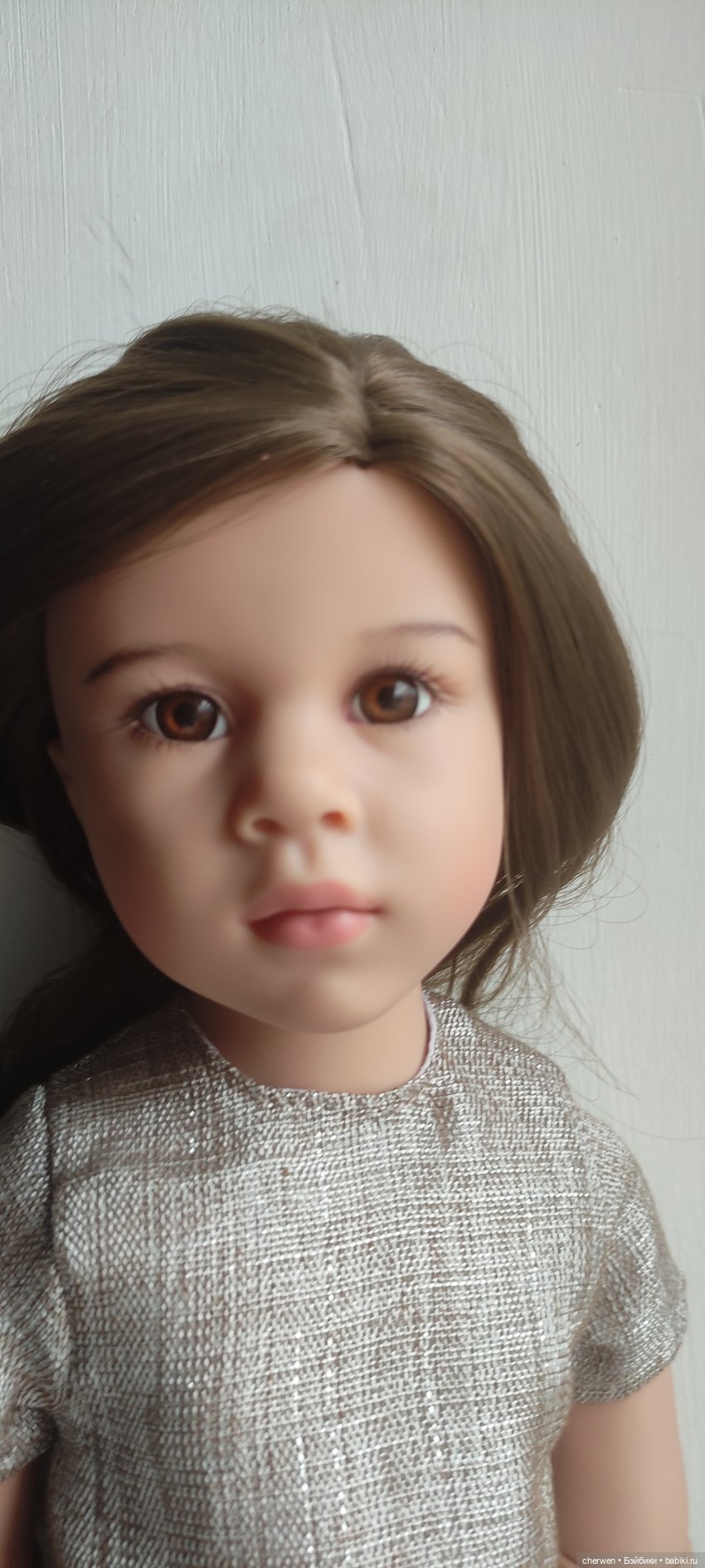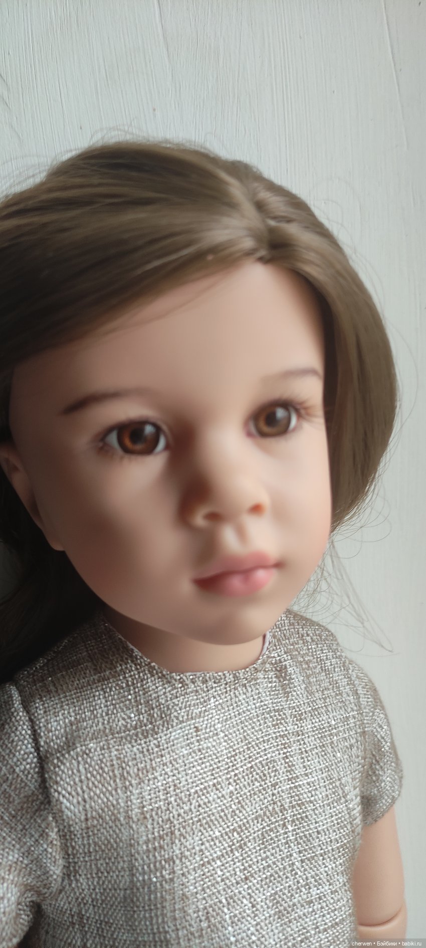 Куколка всегда находилась в витрине. Не переодевалась, в фотосессиях участия не принимала (только, когда фотографировала всех кукол в шкафу).
