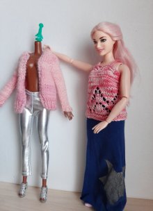 Вязаный комплект на размер Барби-пышки.